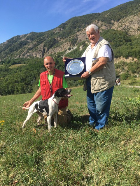 Si aggiudica la prova con la massima qualifica e certificazione Ginger Pointer Femmina d’esperienza di proprietà di Giacomo Succi, portata al richiamo dopo un turno magistrale conclude in bella espressione su fagiano che si era sottratto di pedina.