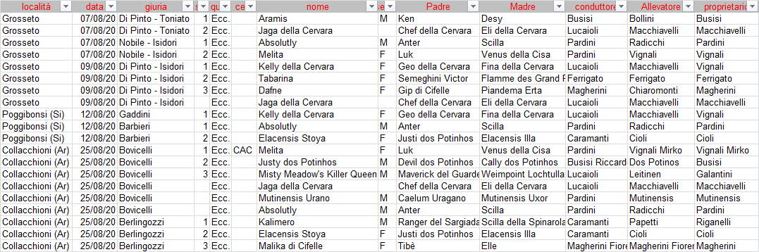 il 25 Agosto a Collacchioni si è svolta l'ultima prova valida per il Trofeo Toscana, bellissimi i terreni con vegetazione giusta e condizioni ideali con un bel vento fresco che ci ha accompagnato tutta la mattina. Ottima la presenza di selvaggina che praticamente si è incontrata a quasi tutti i turni con svariati branchi di starne e pernici rosse.