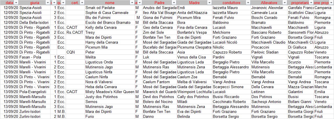 PROVE: da portale ENCI (ENCI/PROVE) come da nuova disposizione ENCI , non verranno iscritti soggetti che non avranno eseguito l'iscrizione online.