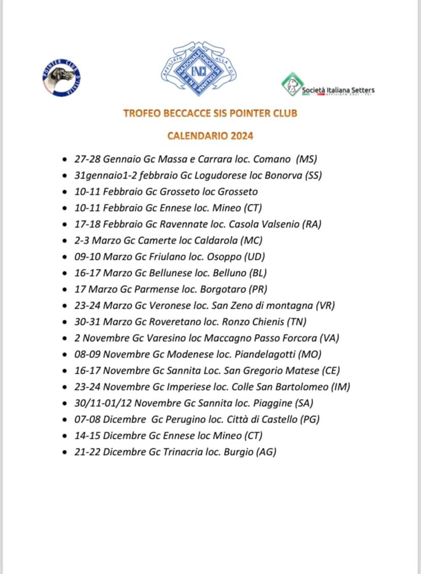 Per il secondo anno consecutivo le due società specializzate, SIS e Pointer Club, hanno collaborato per proporre il Trofeo a beccacce per l'anno 2024.