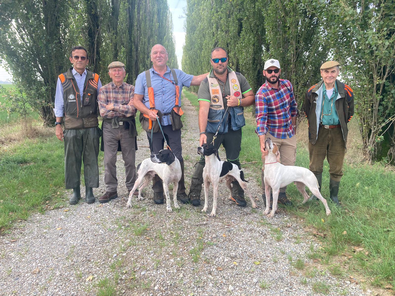 Due batterie di Pointer, giudicate dai Sig.ri Taccon e Lunghi, hanno affrontato il picco di caldo che doveva arrivare in questi giorni e reperire i fagiani che stavano ai bordi dei medicai non è stato facile, anche perchè la ventilazione era presso ché nulla, in più numerose lepri cercavano di farsi gioco dei cani ma tutti i soggetti si sono dimostrati corretti di fronte a questo selvatico.