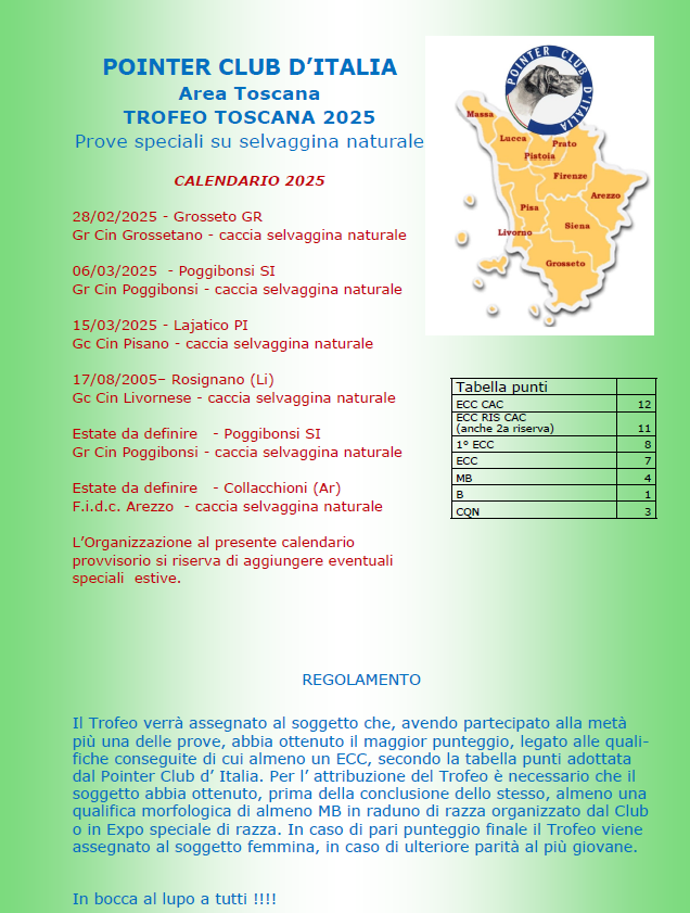 di seguito il calendario delle prove facenti parte al Trofeo Toscana 2025.